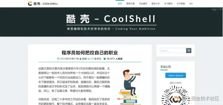 上面列出的博客都是比较大型、综合的博客社区,实际上还有很多比较优质某个技术分类的博客、大厂技术博客、小而美的博客。这些博客可能也会发布到各大博客社区,但是这些博客网站风格不一,各有个性。