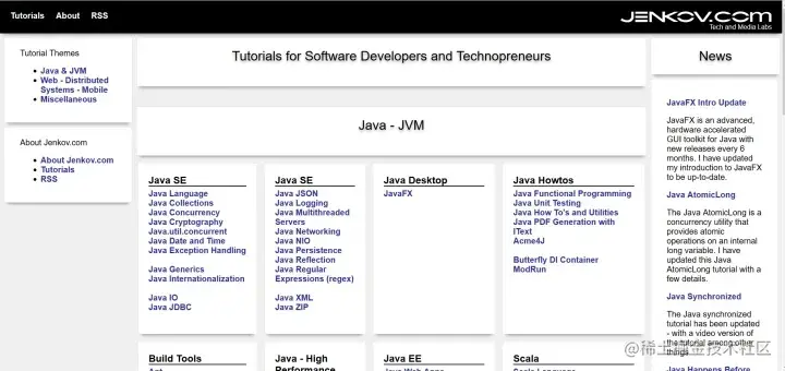 简 介:也是一个国外的技术网站,提供了非常不错的Java教程。