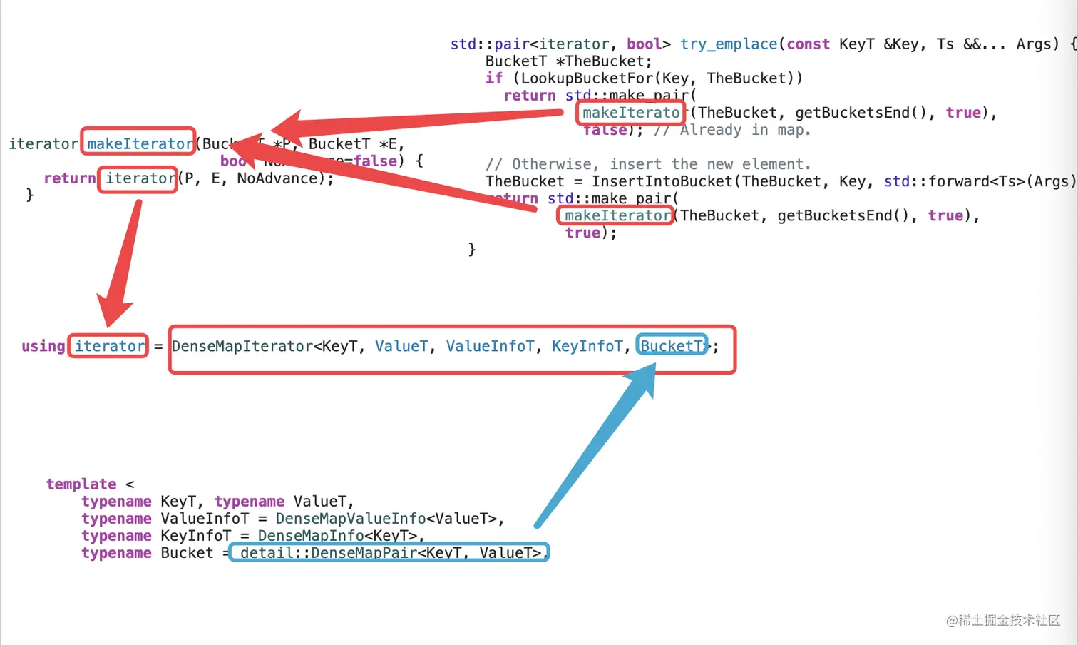 std::pair<iterator, bool> try_emplace(const KeyT &Key, Ts &&... Args) {