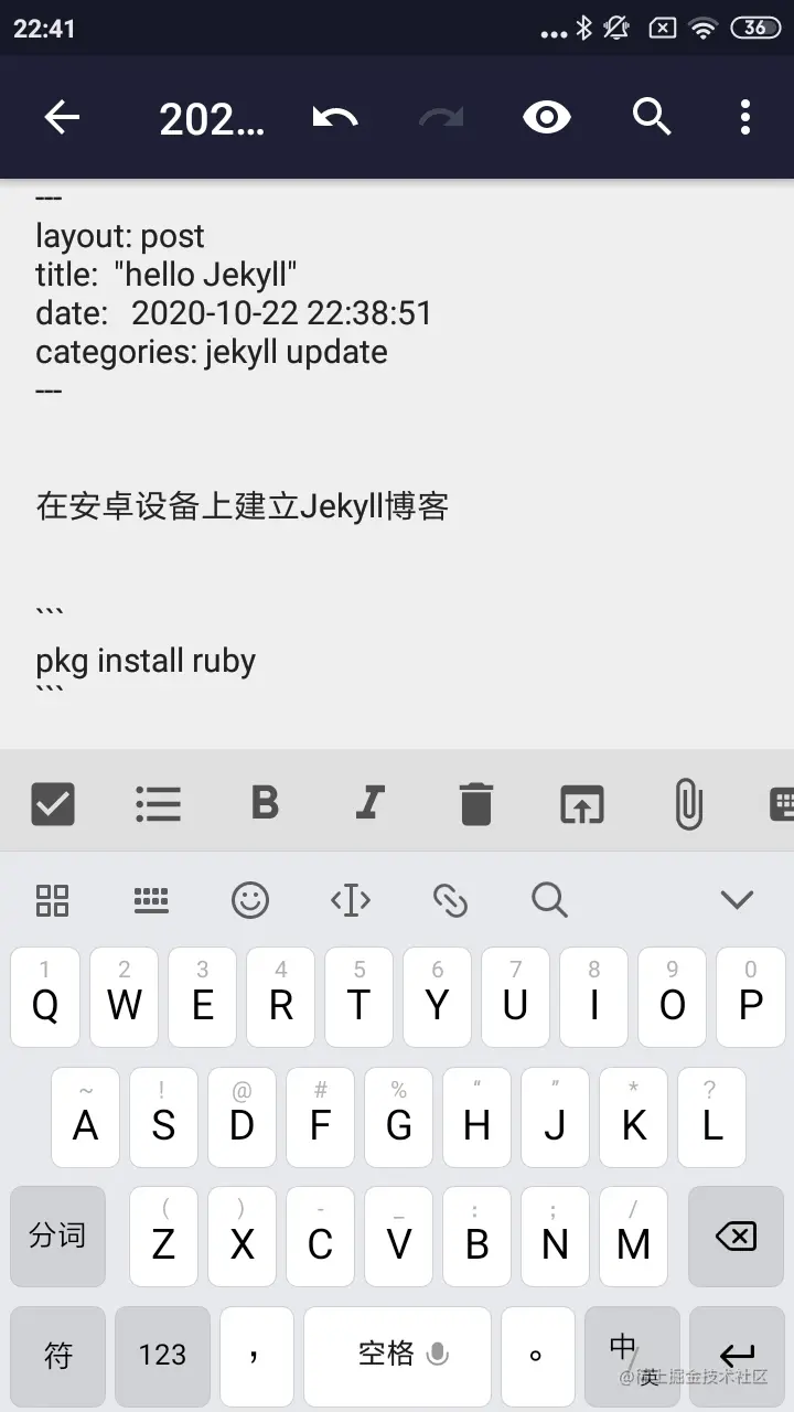 然后在termux上安装ruby