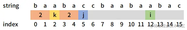 考虑一个字符串string = 'baabaccbaabaabac'。