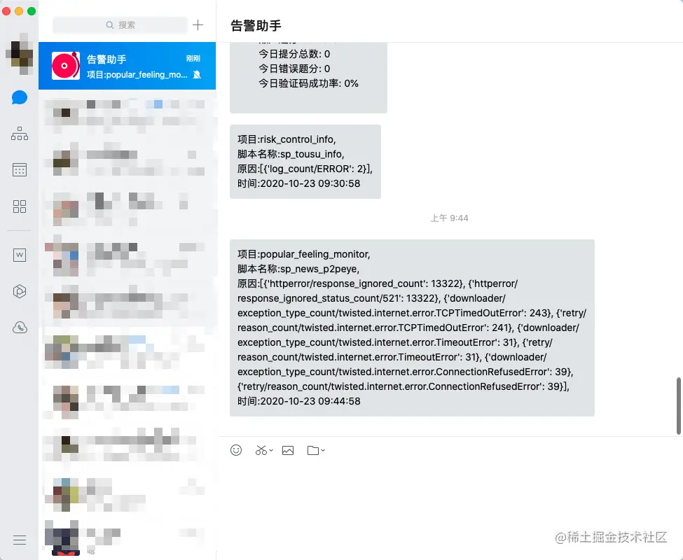 比如爬取新闻,但是页面变化,最重要的列表页没有拿到,数量是0,就可以发一个告警出来。