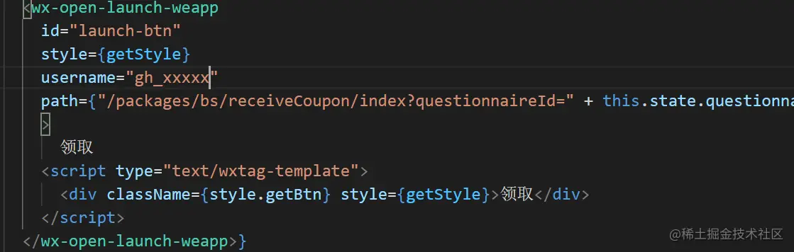 此处有个注意!!配置的是wx-open-launch-weapp,要跳转APP是wx-open-launch-app,别踩坑。