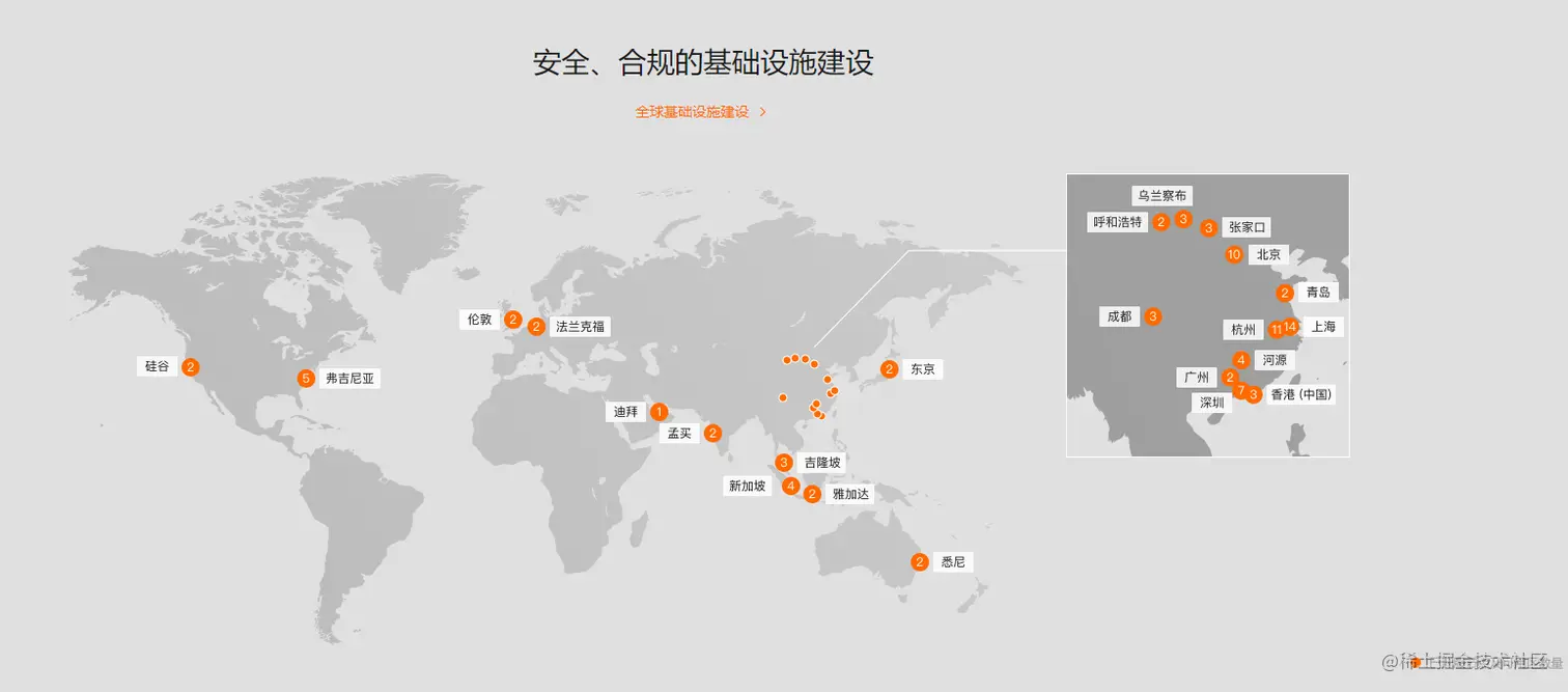 整体而言,在整个主页上来看,新版的给人感觉更加简洁,明晰,对于类别的划分有更高的层次的理解,一如既往的保留了橙色阿里云的底色,整体的灰色格调让橙色更加突出,尤其在新版界面的最下面世界地图,鲜明的显示了阿里云现有的布局,云硬件的分布。