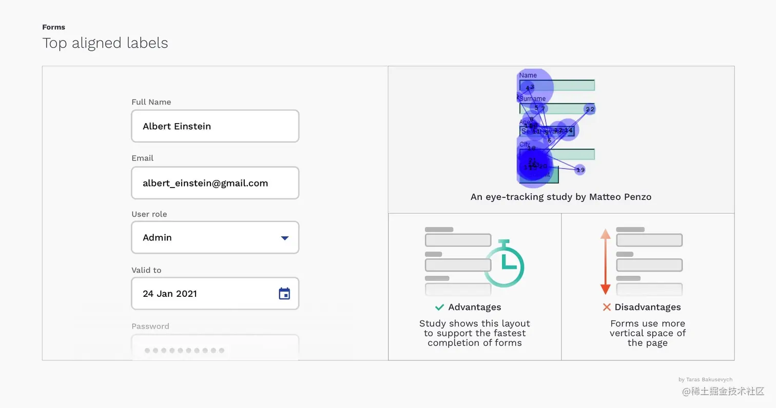 Taras Bakusevych对于输入框组件在表单中的布局已经通过实验得出了结论,这里再与大家分享一下。主要是对带有标签的输入框,如何将标签和输入框做对齐的几种经典设计的利弊做了分析总结。