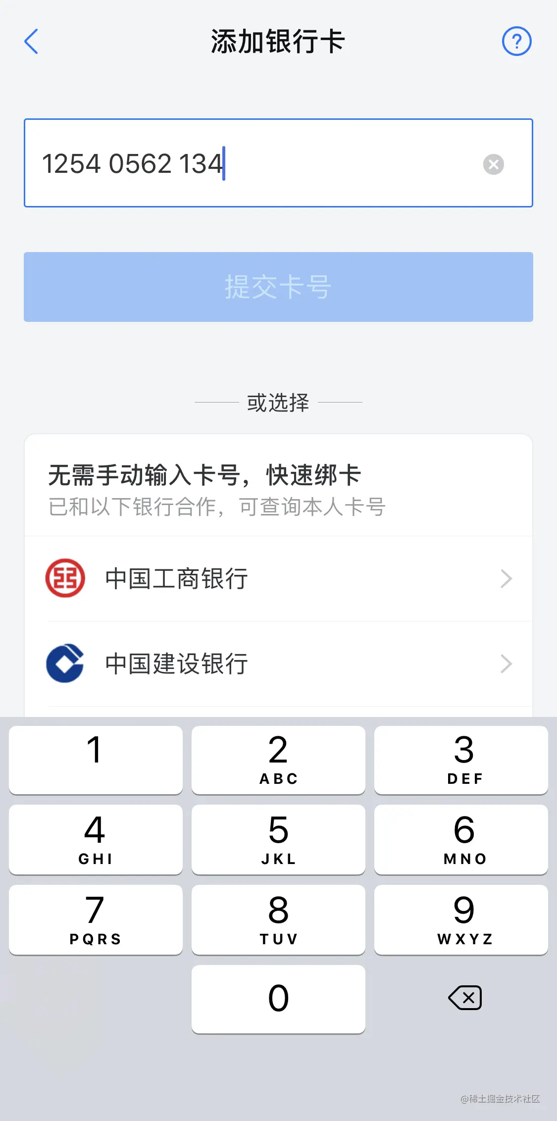 最简单的是限制输入文本,比如手机号输入框内无法键入字母,一些用户名输入框内无法键入汉字等等。下图为支付宝app中添加银行卡的表单页面,除了用只能调出数字键盘的方式限制输入内容,还在字段的分割上做了处理,借用实体银行卡片的分割形式,使用户更熟悉,并且能更明晰的确认是否出错。