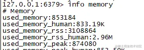 通过info memory查看内存使用情况,关注参数:
