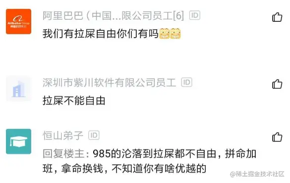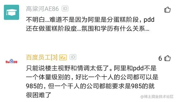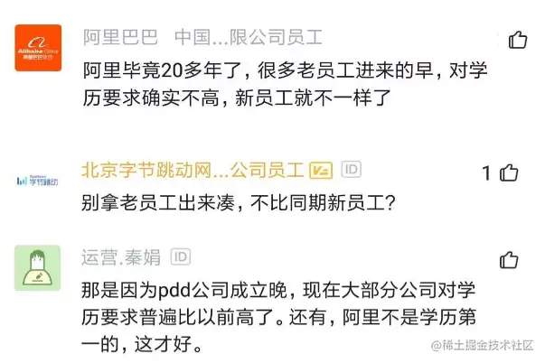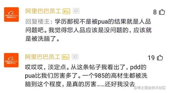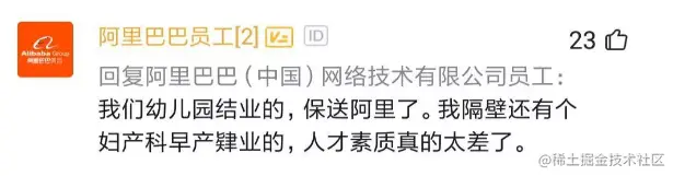 阿里员工纷纷出来回应,有的说自己是幼儿园结业,隔壁同事妇产科早产肄业,阿里员工就这么差,怎么了?