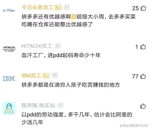 除了拉屎不便之外,拼多多的大小周和疯狂加班也成了大家diss的重点,一进拼多多,寿命短十年,拼多多就是穷人孩子吃苦挣钱的地方。