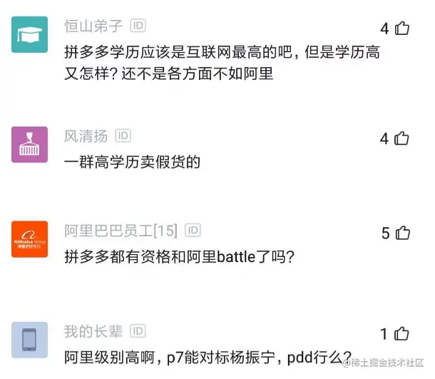 拼多多员工学历高又怎样?还不是高学历卖假货?根本没资格和阿里battle,阿里的p7能对标杨振宁,拼多多行吗?