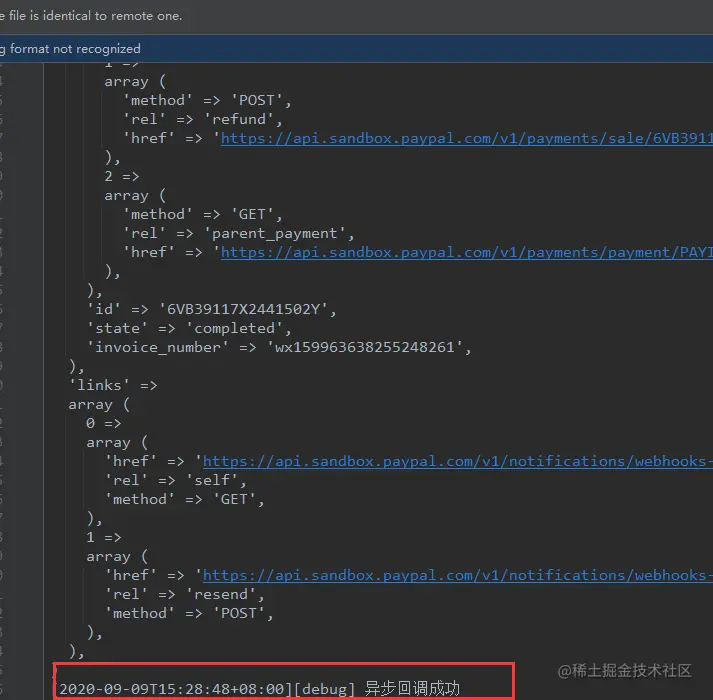 所以整个流程就是,前端请求服务器的PayController的pay方法,pay方法会调用PayPalService服务类的checkout构建支付(注意我这里只是实例代码,所以商品名称,价格是写死的,到时灵活变通即可),用户去链接付款成功后(这里并没有完成支付),会跳转到我们设置的同步回调地址,我这里就是PayController的callback方法(注意,paypal跳转到callback方法的时候,会再请求一次paypal完成支付(这里才完成支付),支付完后买家和卖家账号会看到交易信息)。 然后我们一开始在paypal开发者中心创建了一个app,并且在那个app上设置了异步回调地址,这个回调地址就是访问到了我们的PayController的notify方法,到时paypal会请求到这个接口,这里我建议把路由设置成any,即不管是get还是post还是其他都能访问的。 如果是laravel的话,因为laravel的CSRF机制,我们还要在相应的中间件中将路由放入到白名单才能被paypal访问。