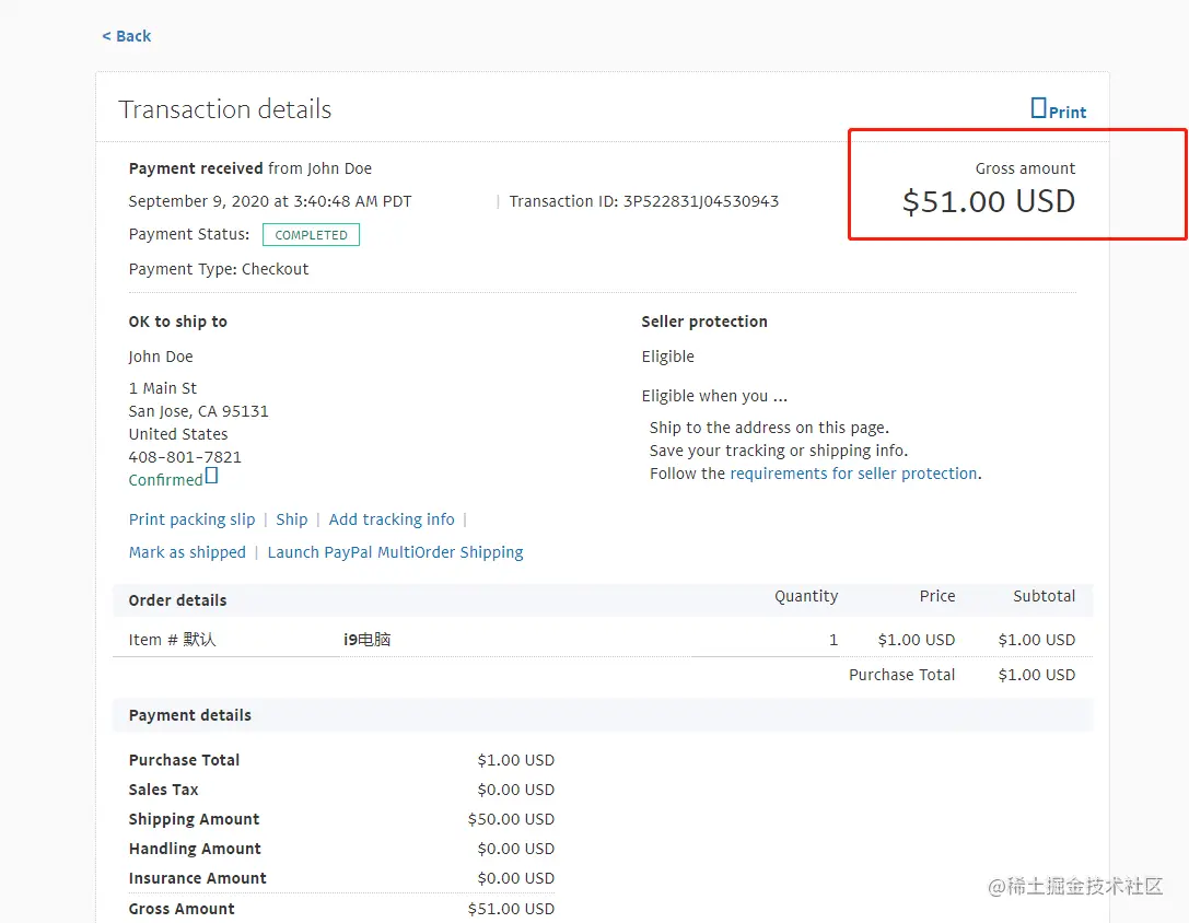 至此整个paypal流程就已经走通了,因为方便读者们看所以有些数据我是写死了,比如商品信息那里的iphone那些,到时更换成你们的数据即可。非常感谢各位能看到这里,有不懂或不足的欢迎指正,感谢各位。