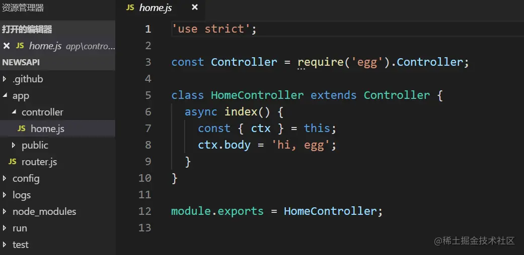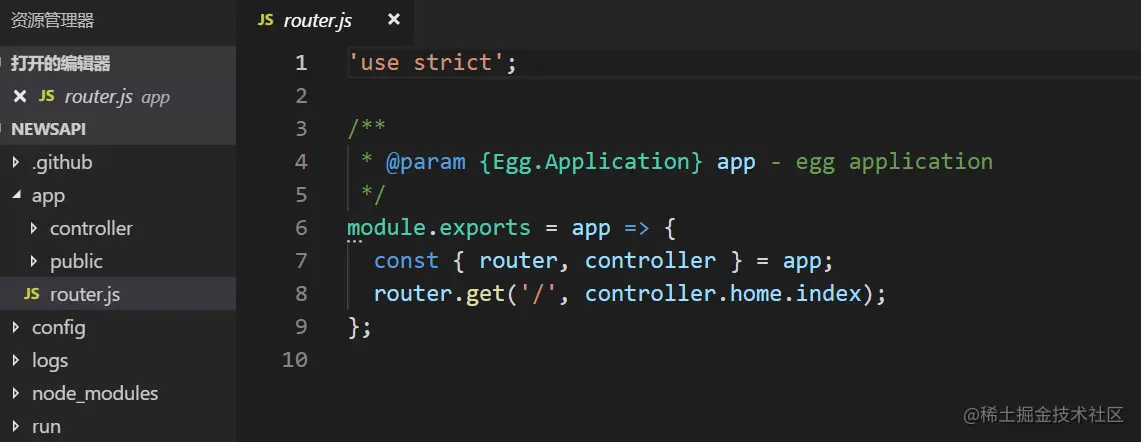 打开上面创建的项目,路径app/router.js下面的就是路由
