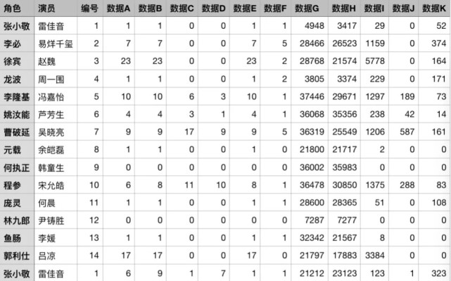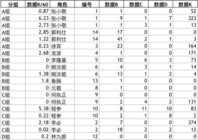 首先对 source.csv 中的数据项进行筛选,需要的数据项有“角色”、“编号”、“数据B”、“数据C”、“数据D”和“数据K”: