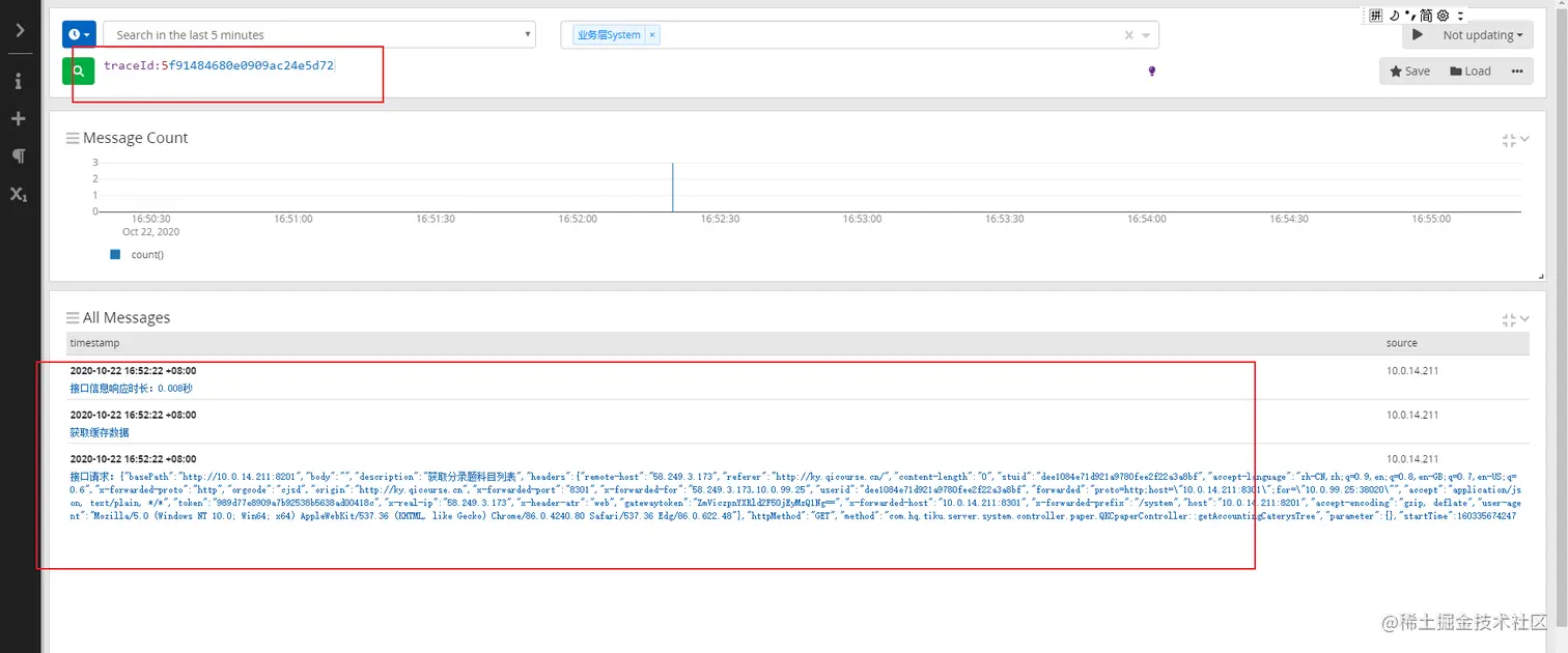 因为我们一个服务可能有多个副本,那么我们怎么才能把同一个线程的链路日志全部筛选呢?所以我们在日志里面加上了traceId