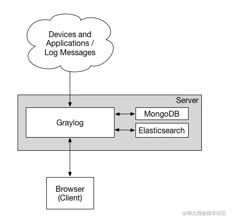 Graylog是一个生产级别的日志收集系统,集成Mongo和Elasticsearch进行日志收集。其中Mongo用于存储Graylog的元数据信息和配置信息,ElasticSearch用于存储数据。