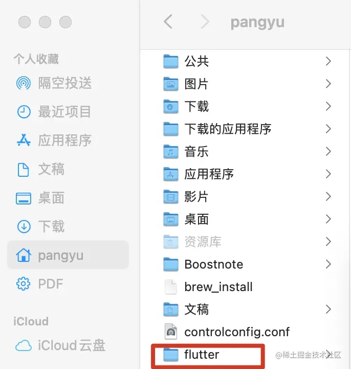 export PATH=/Users/pangyu(你文件所在目录的路径)/flutter/bin:$PATH