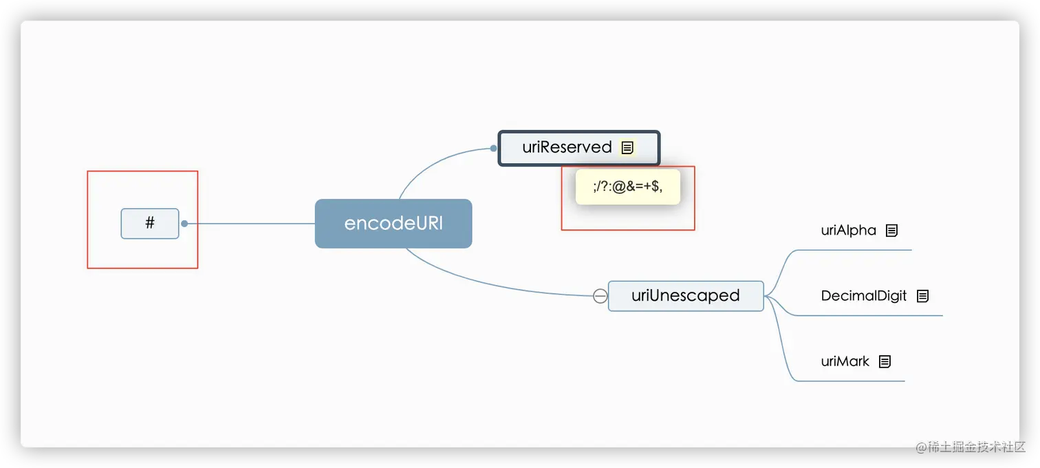 看图找茬,红框中的部分不一样,也就是说encodeURL不会处理#、;、/、?、:、@、&、=、+、$、,这些字符