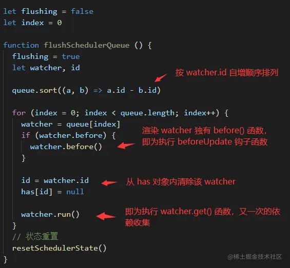 active属性表示该watcher实例是否激活可用。lazy属性是计算属性的标志。dirty是计算属性的开关,表示是否需要重新计算。user属性表示为用户手写定义的watcher实例。before()函数是渲染watcher所独有的属性,表示执行beforeUpdate()钩子函数。