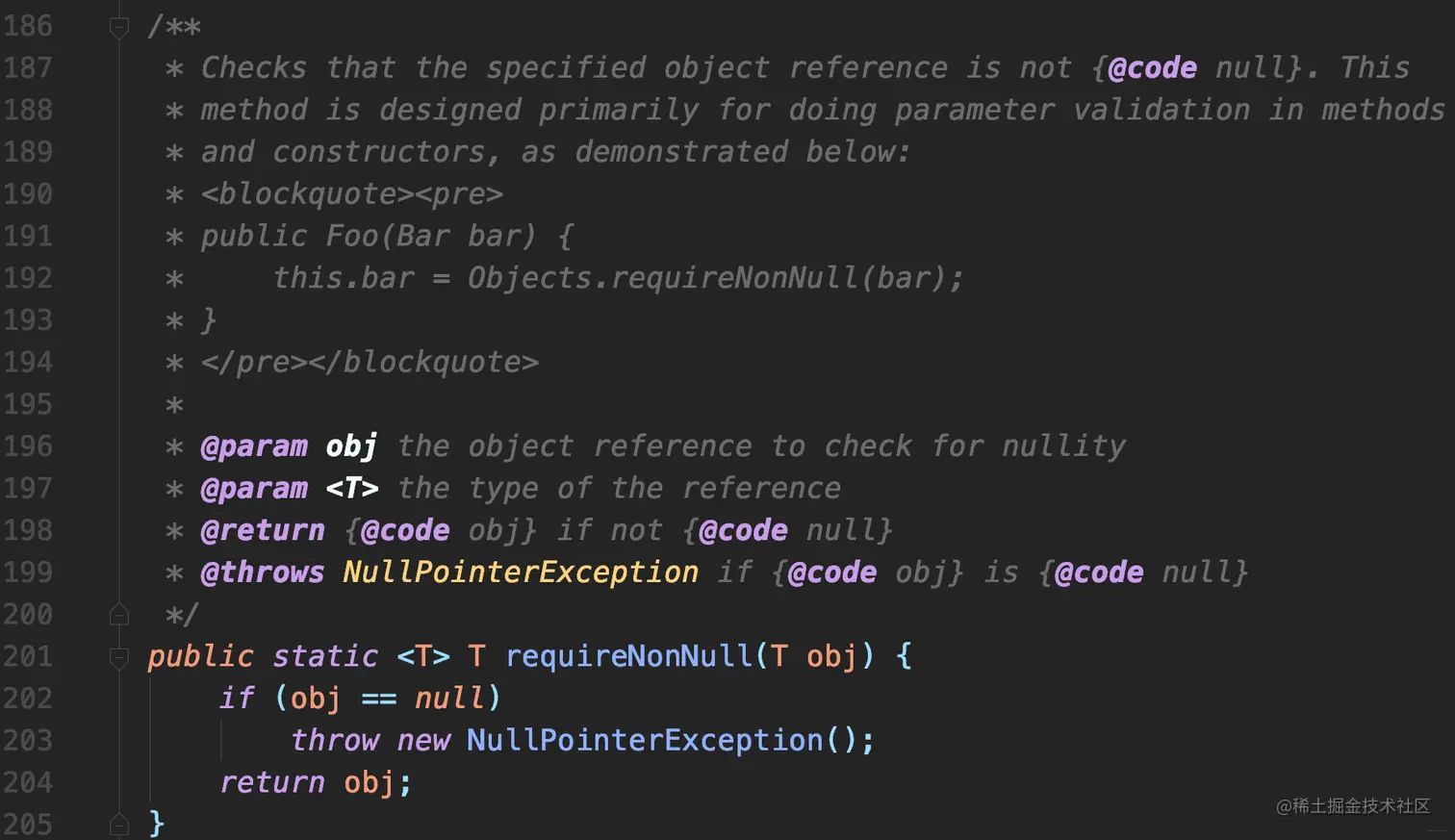 也可以忽略返回值并使用 Objects.requireNonNull 作为一个独立判空方法。