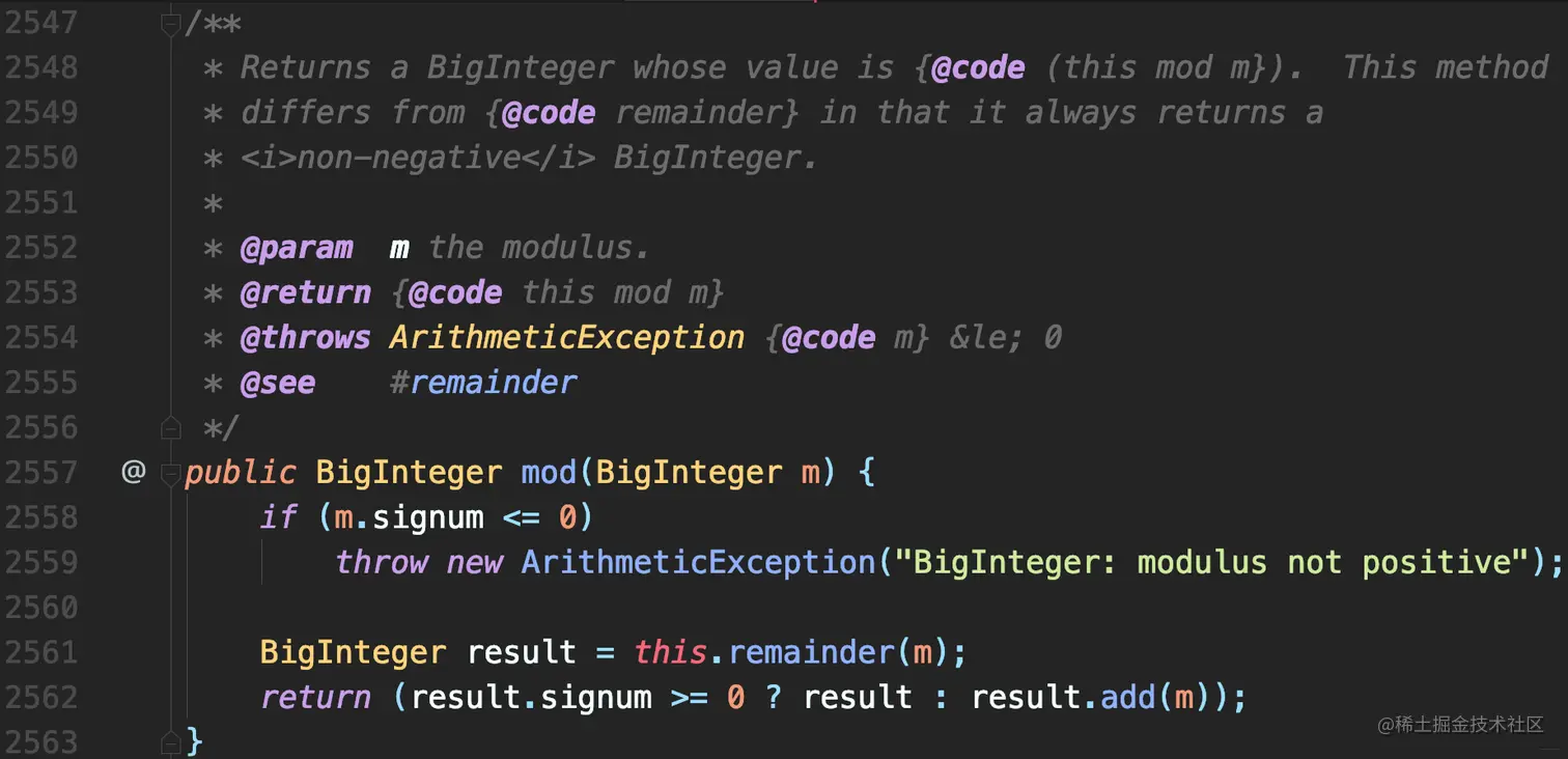 m.signum()的副产物。该异常记录在外围 BigInterger 类级别的文档注释。类级别注释适用于类的所有public方法中的所有参数。这可以避免在每个方法上分别记录每个 NullPointerException 而造成混乱。 它可与@Nullable或类似注解结合使用,以指示某特定参数可能为 null,但这种做法并不标准,而且使用了多个注解。