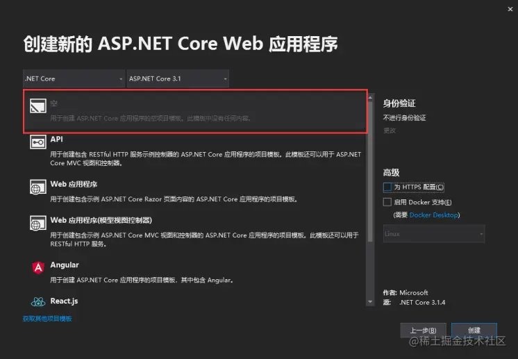 新建一个 .Net Core 的空Web项目,支持 2.1 及以上版本