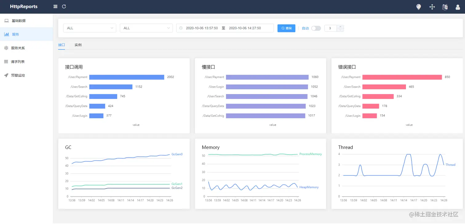 HttpReports 是基于.Net Core 开发的APM监控系统,使用MIT开源协议,主要功能包括,统计, 分析, 可视化, 监控,追踪等,适合在微服务环境中使用。