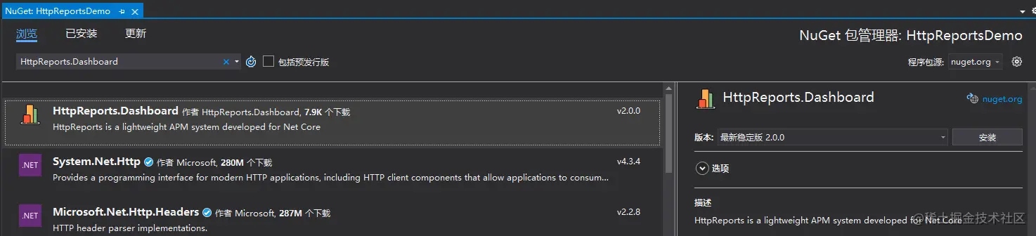 Nuget 引用 HttpReports , HttpReports.Transport.Http