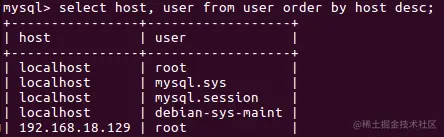- 在localhost(对我来说是安装了mysql的ubuntu)的机器登入mysql: