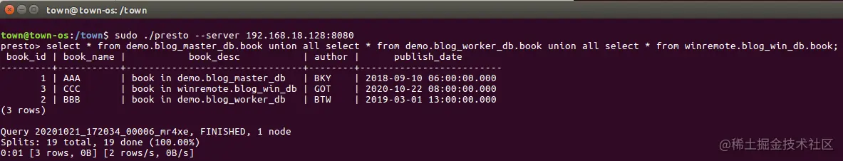 sudo ./presto --server 192.168.18.128:8080 --catalog demo --schema blog_master_db