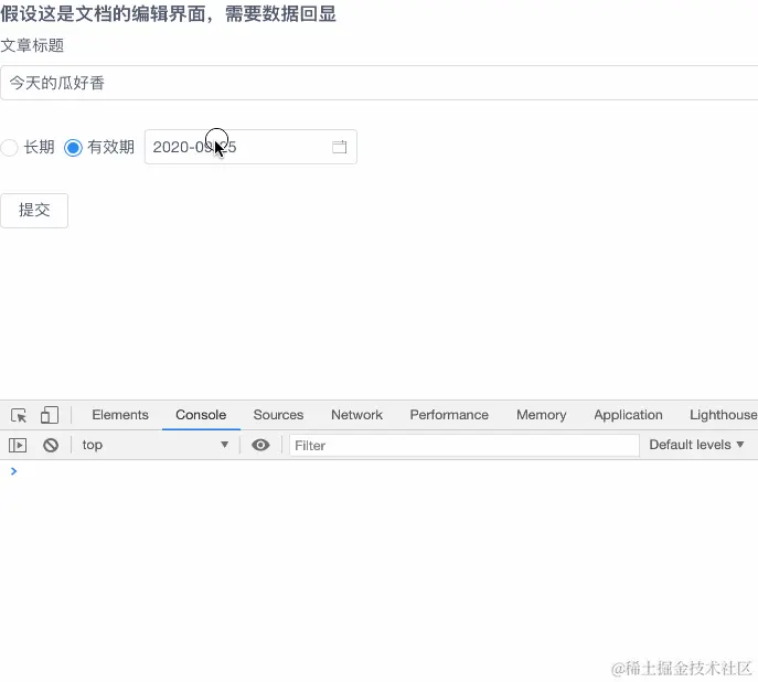 如果是新建文章, 日期默认是长期, 如果是编辑文章,数据回显,可能是其他日期