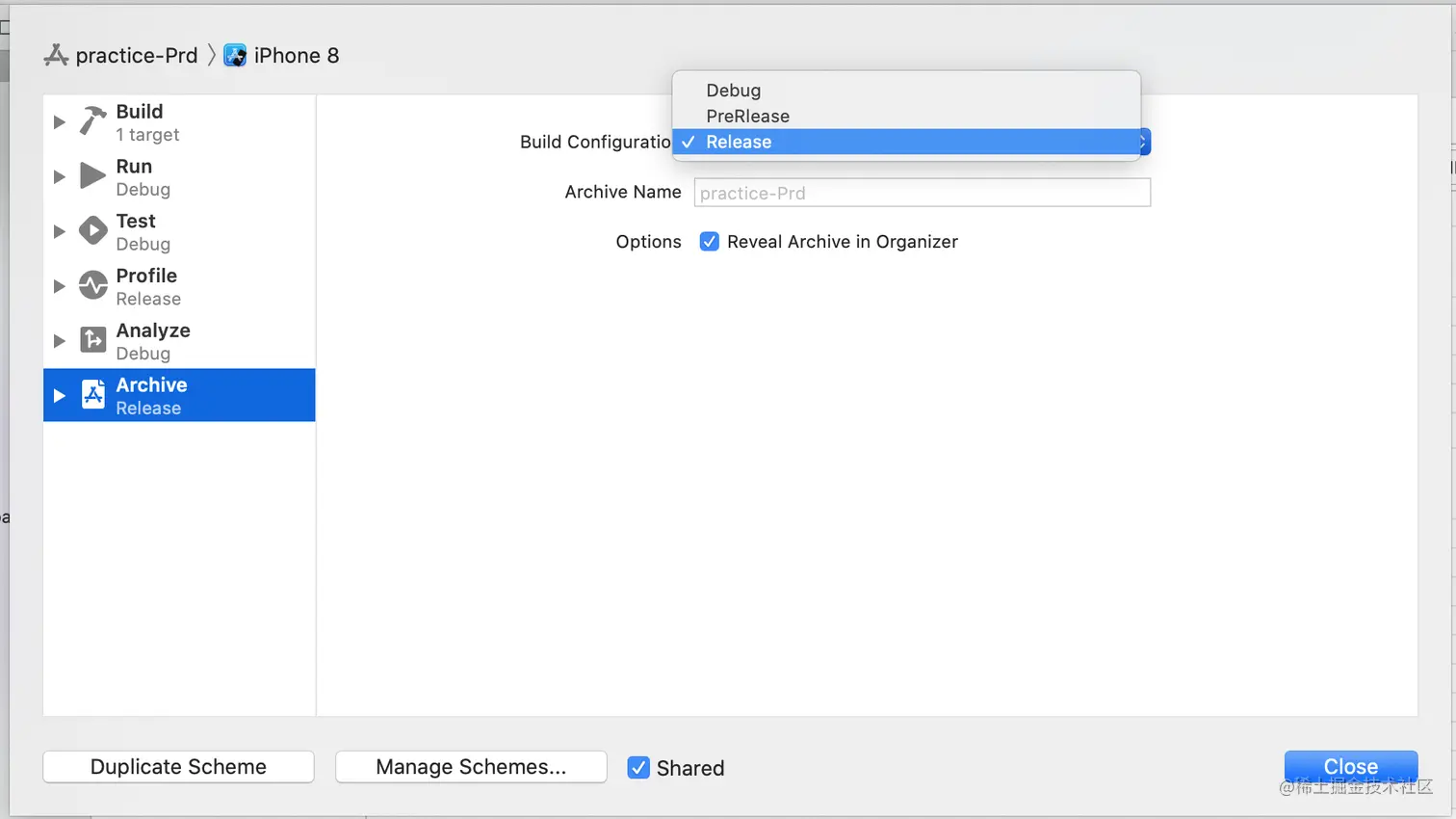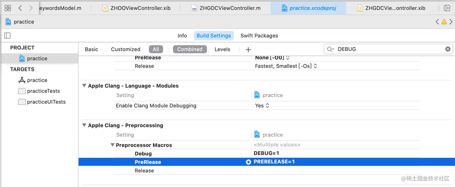 1、Configurations : + Copy Debug -> 修改名称PreRelease