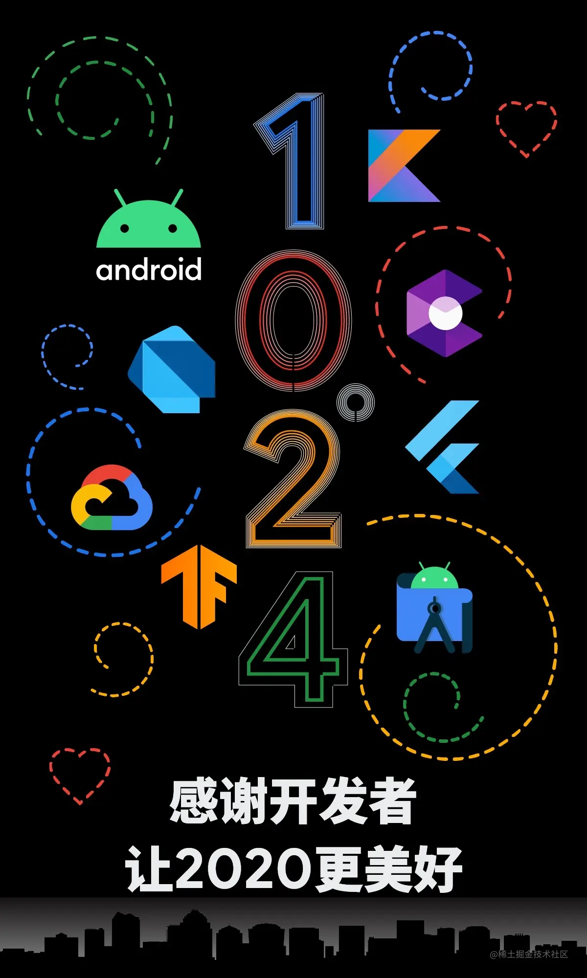 我们看到诸多应用和服务接连问世,为特殊时期的生活铺平道路,为人们之间的连接扫除障碍。我们看到开发者社区迸发出惊人的活力,各种精彩的反馈与贡献接连涌现。诸多新工具、新版本的诞生,离不开开发者社区的能量。有趣的是,今年不少人气开发技术/工具都和 "10.24" 有很深的缘分: Android 11、Android Studio 4.1、Flutter 1.22 (以及 Dart 2.10)、Kotlin 1.4、TensorFlow 2.3、ARCore 1.20,Google Cloud 也在前不久的 Next'20 上为大家带来了不少好消息。