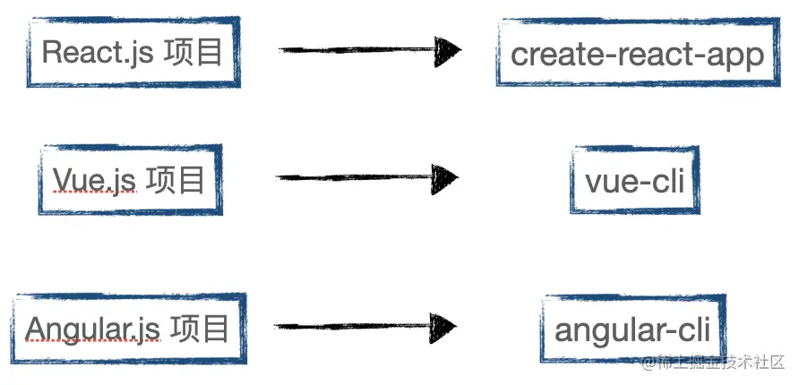 前端项目创建过程当中,由于前端技术选型比较多样,另外又没有一个统一的标准,所以前端方向的脚手架一般不会集中在某一个IDE当中。 它都是一个独立的工具存在,从而显得相对会复杂一些,但是本质上脚手架的目标都是一样的,因为他们都是为了解决我们在创建项目过程当中那些复杂的工作。