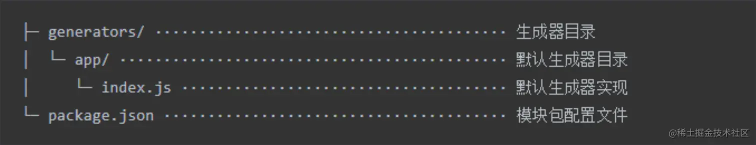 除了特定结构还有一个与普通的NPM不同的是Yeoman的Generator模块名称必须是