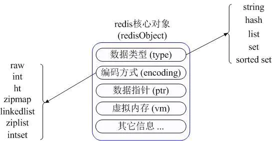 首先Redis内部使用一个redisObject表示所有的key和value,其信息如图所示。type表示一个value对象是什么数据类型,encoding表示不同数据类型在redis的内部编码。 ##### 1. 字符串String 字符串是Redis中最基本的数据结构,主要用来存储key-value型的键值对。Redis中字符串对象的编码可以是int、raw和embstr。 - int编码:保存long型的64位有符号整数 - embstr编码:保存长度小于44字节的字符串 - raw编码:保存长度大于44字节的字符串。 Redis使用SDS简单动态字符串结构体来存储字符串。 struct sdshdr{ int len; //记录buf中已使用字节的数量等于SDS所保存的字符串的长度 int free; //记录buf中未使用字节的长度 char []buf; //字节数据,保存字符串 } SDS相比C语言字符串有以下好处: - 可以实现O(1)复杂度的获取字符串长度,而C语言需要通过时间复杂度为O(n)的遍历来获取 - 杜绝缓冲区溢出。当对字符串进行拼接时,SDS会检测buf的空间,如果空间不足会先扩容 - 通过空间预分配和惰性回收减少内存重新分配次数。 - 当len小于1mb时,每次扩容后buf数组长度都为len*2+1,此时len和free相等,一个字节用于保存字符串结尾的空字符;当len大于1mb时,每次会额外分配1mb的free空间 - 当SDS进行缩容时,不会立即进行内存重分配回收缩短后空出来的字节,而是用free记录这些字节留待将来使用。 - 二进制安全。SDS通过len属性判断字符串是否结束而不是通过结尾的空字符,所以可以存储任何数据。 - 兼容部分C字符串函数。 常用命令:GET key、SET key value、EXISTS key、DEL key、SETNX 使用场景:常规key-value缓存、计数等。 ##### 2. 列表list Redis中的列表相当于Java中的LinkedList,其插入删除非常快但随机访问较慢。Redis在3.2之前使用ziplist或linkedlist作为底层结构,而在3.2后改用quicklist作为底层实现。 Redis列表使用两种数据结构作为底层实现:压缩列表ziplist和双向链表linkedlist。因为双向链表占用内存较多,当满足列表节点数量小于512并且单个节点元素大小小于64字节时会优先使用ziplist。 ziplist是为了节省内存而开发的,是一块连续的地址空间。一个ziplist可以包含多个节点(Entry),每个结点的长度不同,通过记录当前entry和上一个entry的长度来推算下一个元素的位置。 linkedlist是标准的双向链表,Node节点包含prev和next指针,Redis记录了链表的head和tail指针,所以在表头和表尾进行插入删除的时间复杂度都为O(1)。 linkedlist在链表的两端操作很快,但它的内存开销较大,因为每个节点还要额外保存两个指针,并且地址不连续容易产生内存碎片;ziplist存储在一块连续内存上,存储效率很高但不利于修改操作,插入和删除需要频繁地申请和释放内存。 所以Redis在3.2后引入了quicklist作为list的底层实现。quicklist可以看成是ziplist和linkedlist的结合,是一个ziplist组成的双向链表,每个节点使用ziplist来保存数据。
