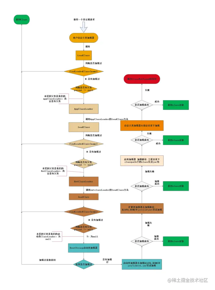 2、双亲委派模型加载的流程图