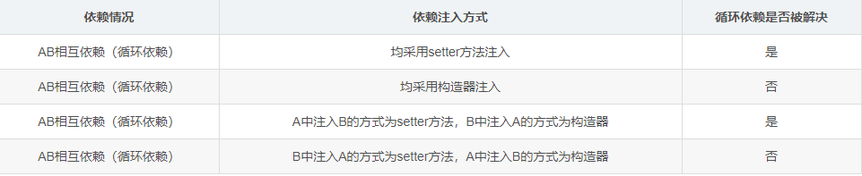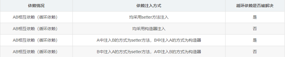 具体的测试代码跟简单,我就不放了。从上面的测试结果我们可以看到,不是只有在setter方法注入的情况下循环依赖才能被解决,即使存在构造器注入的场景下,循环依赖依然被可以被正常处理掉。