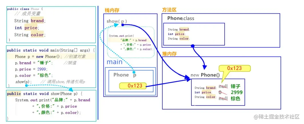 1)一个对象,调用一个方法内存图