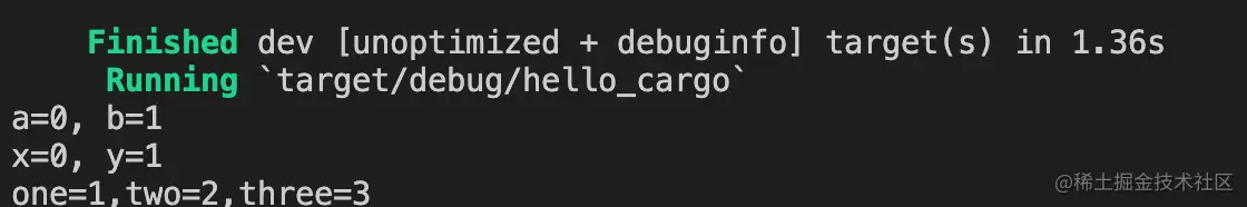 demo中展示了分别从元组,结构体和数组中使用模式匹配,运行结果如下: