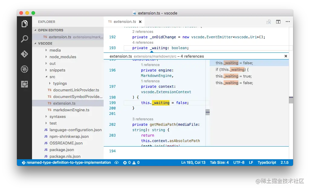一直用vscode开发,最近读了重构一书,这次就给不喜欢看操作文档的同学分享vscode编辑器中的快速重构小技巧,主体是引用的vscode官方文档:code.visualstudio.com/Docs/langua…