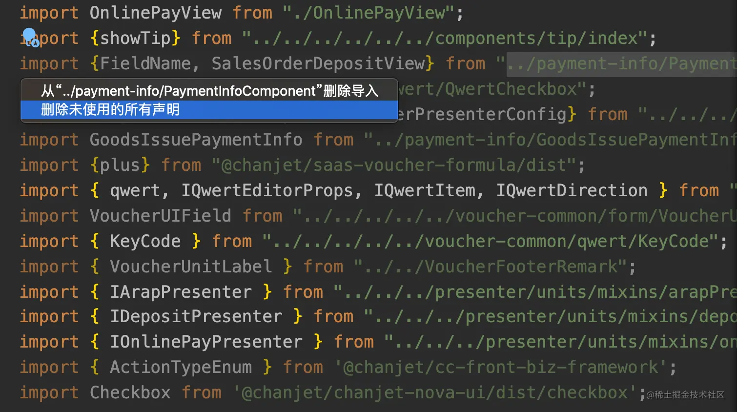 如果有多个未被使用的导入,提示中会出现全部删除选项