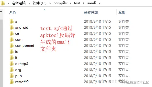 在这里我就只以签名校验来对破解思路做个介绍了,让我们在实战以前认认路,磨磨刀。如果反编译步骤还有不了解的可以先去参考上篇博客,首先我们将待编译apk通过apktool生成我们所需要的smali文件,这些文件会根据程序包的层次结构生成相应的目录,程序中所有的类都会在相应的目录下生成独立的smali文件