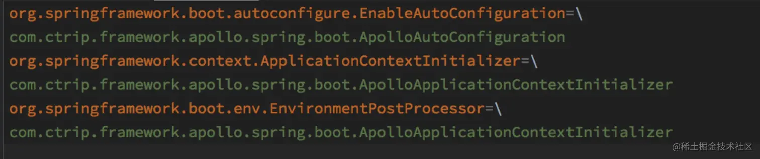 在apollo客户端jar包的spring.factories文件中可以看到这样的配置