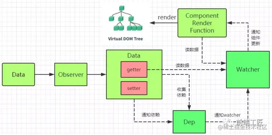 当外界通过Watcher读取数据的,会触发getter从而将watcher添加到依赖中