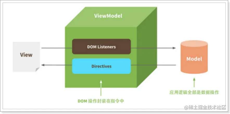 - 数据变化时,自动“通知”需要更新的视图部分,并进行更新 对应专业俗语分别是: