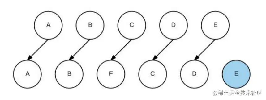 // oldCh全部处理结束,newCh中剩下的F,创建F并插入到C前面