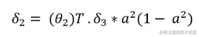 - 现在,计算的梯度。将乘以。乘以“”乘以“”。在下面的公式中,“a”上的上标2表示第2层。请不要把它误解为平方。