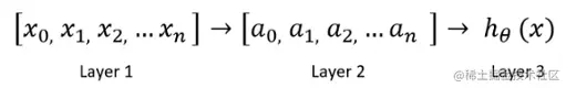 这里,“layer1”是输入特征。“Layer1”进入另一个节点layer2,最后输出预测的类或假设。layer2是隐藏层。可以使用多个隐藏层。