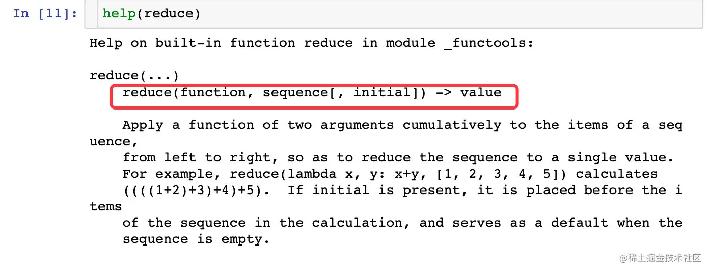 help(reduce) # 查看帮助文档